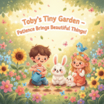 Toby plants tiny seeds and waits with his friends β Sunny the bunny, Blossom the girl, Chirpy the bluebird, and…